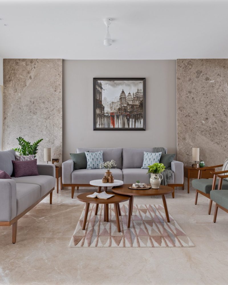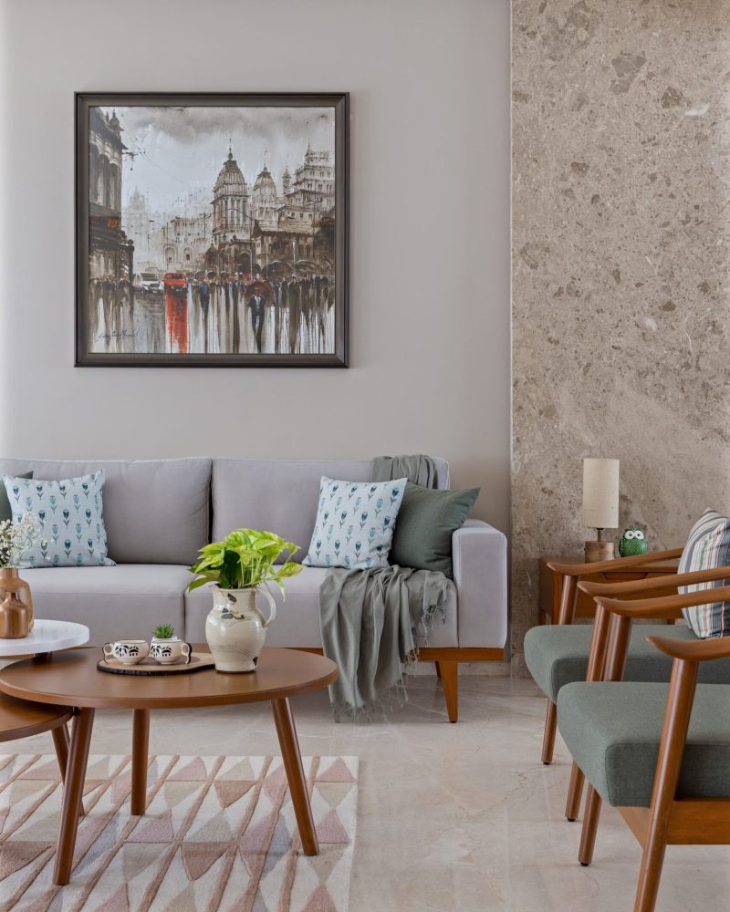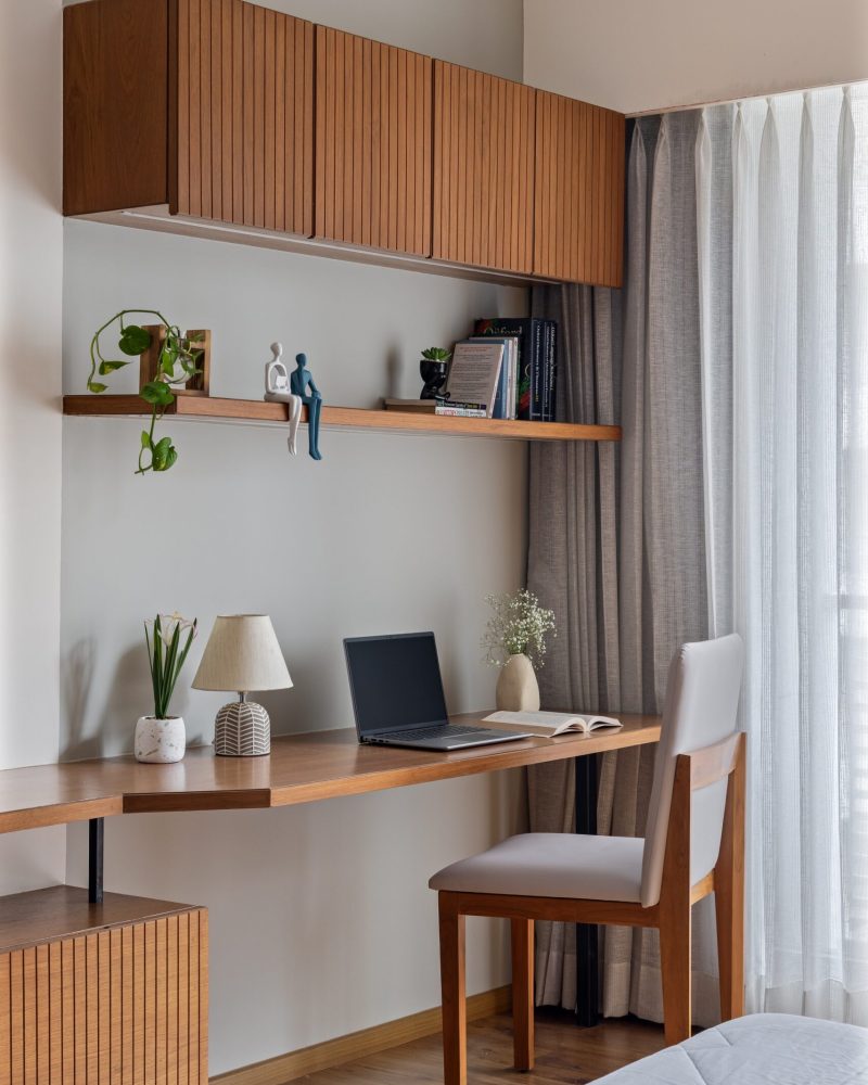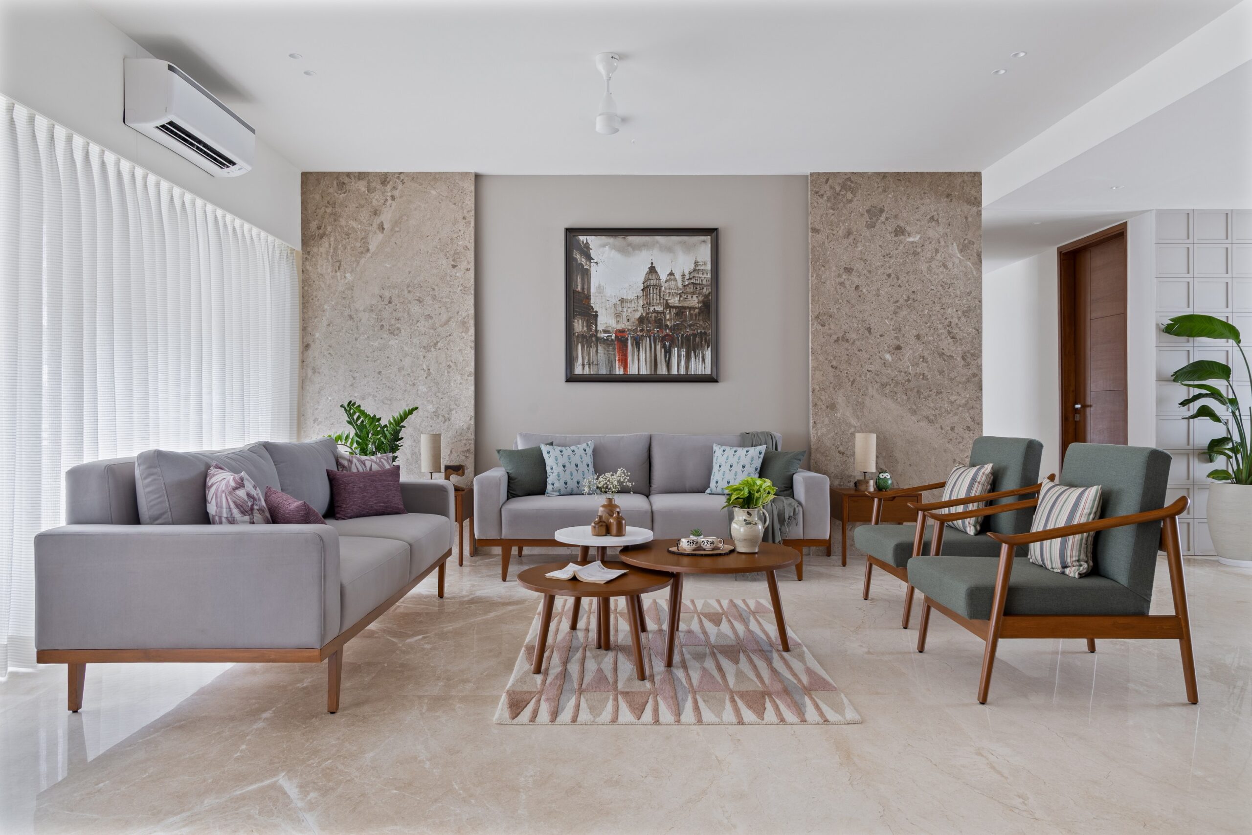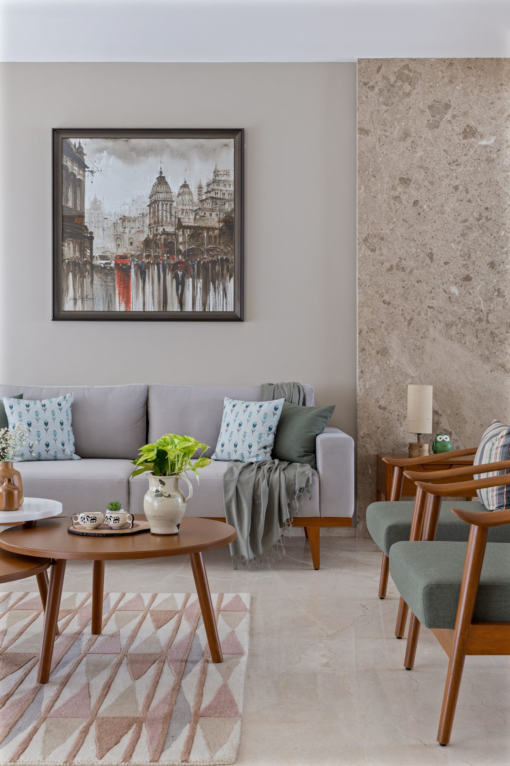 Designed without a formal brief, this 2000 sq. ft. home emerged from trust and creative freedom. A warm, minimal aesthetic unfolds through the seamless flow of beige Italian marble, clean vertical lines, and a restrained palette of wood and soft hues. Subtle partitions, custom details, and thoughtful furnishings add character while maintaining calm continuity, creating a home that feels elegant, functional, and quietly distinctive.