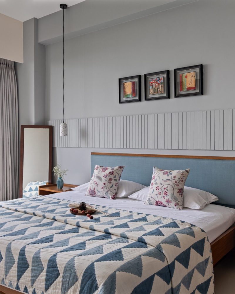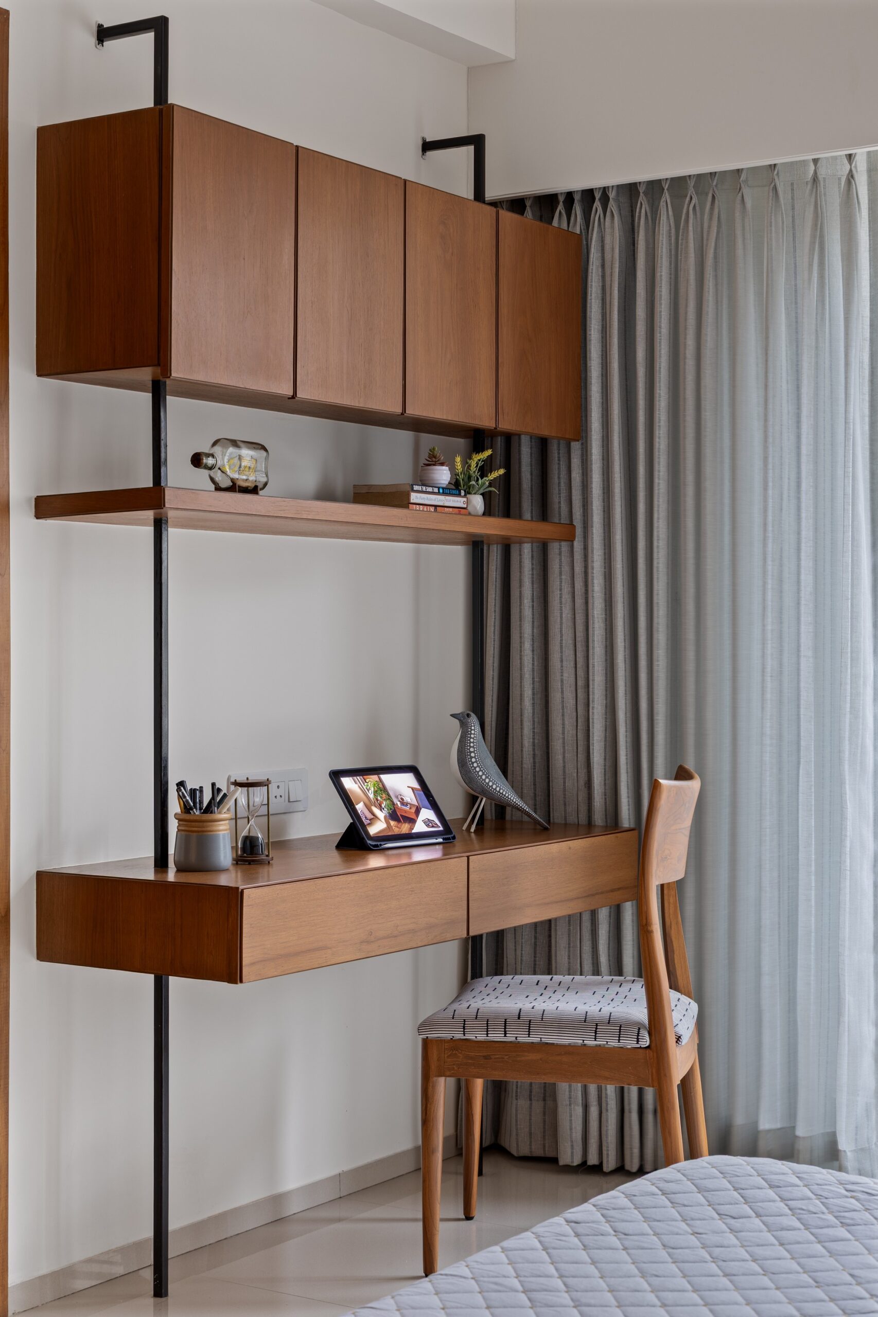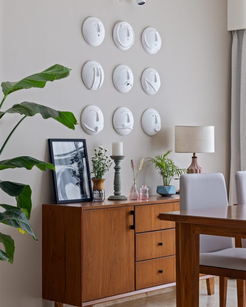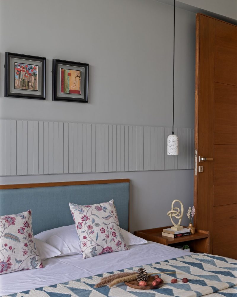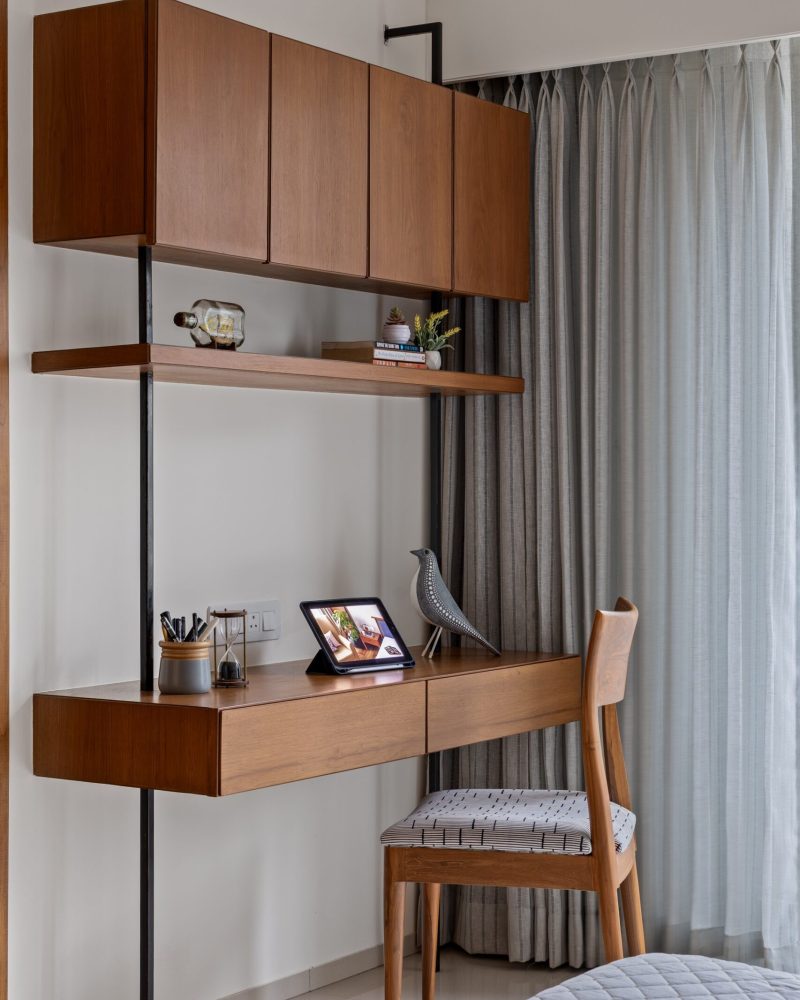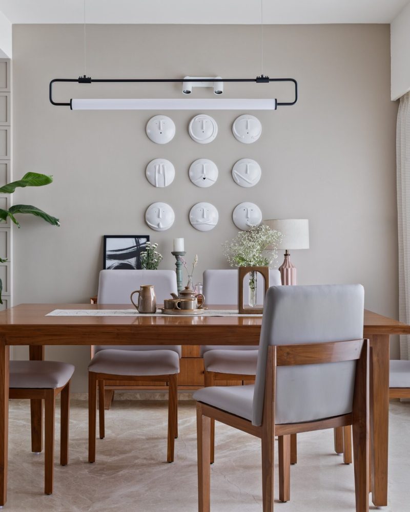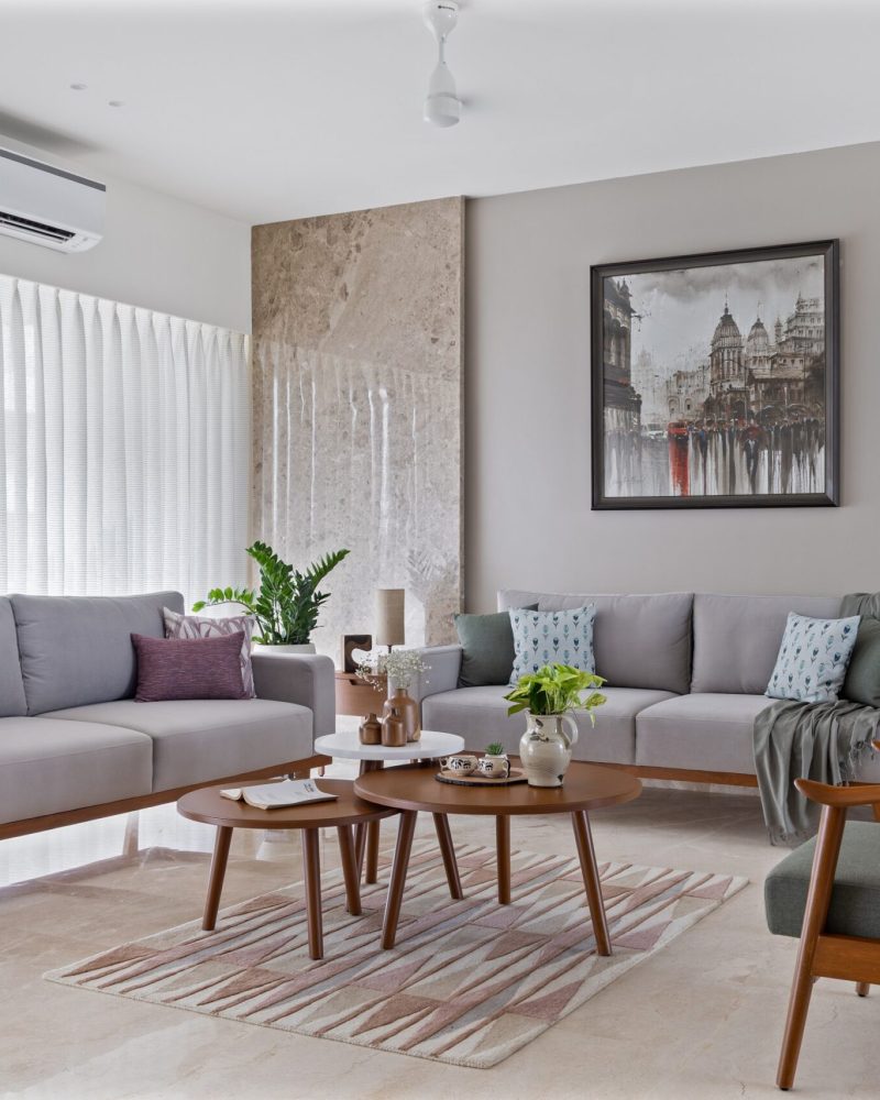 Designed without a formal brief, this 2000 sq. ft. home emerged from trust and creative freedom. A warm, minimal aesthetic unfolds through the seamless flow of beige Italian marble, clean vertical lines, and a restrained palette of wood and soft hues. Subtle partitions, custom details, and thoughtful furnishings add character while maintaining calm continuity, creating a home that feels elegant, functional, and quietly distinctive.