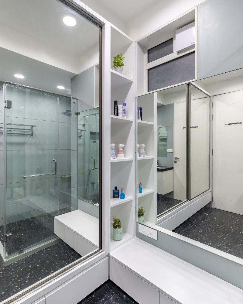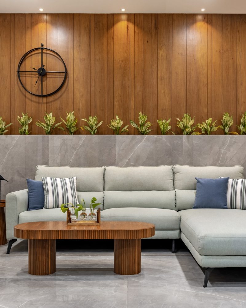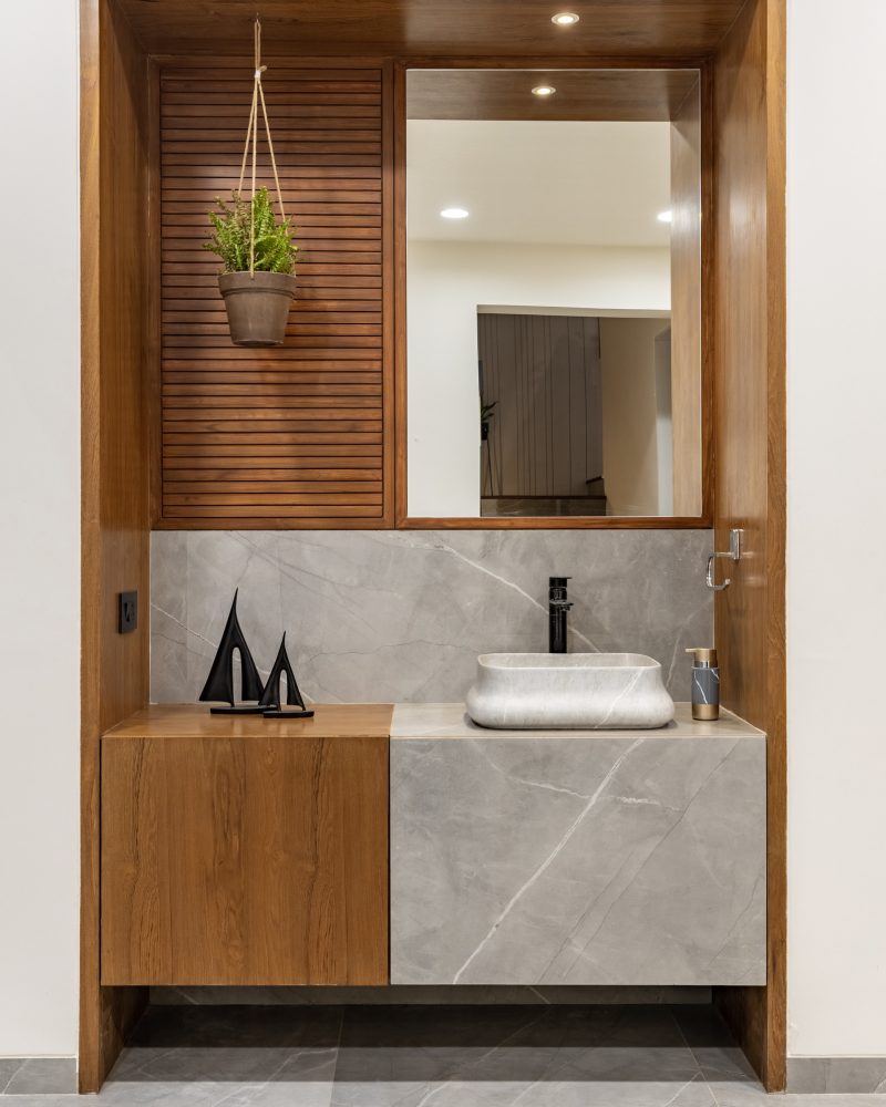 This elegant bungalow has been designed to be luxurious and comfortable – a space where the family could easily unwind and relax after a long day! The use of solid wood, a neutral colour palette and Italian Marble gives it a luxurious touch and homely and welcoming at the same time.