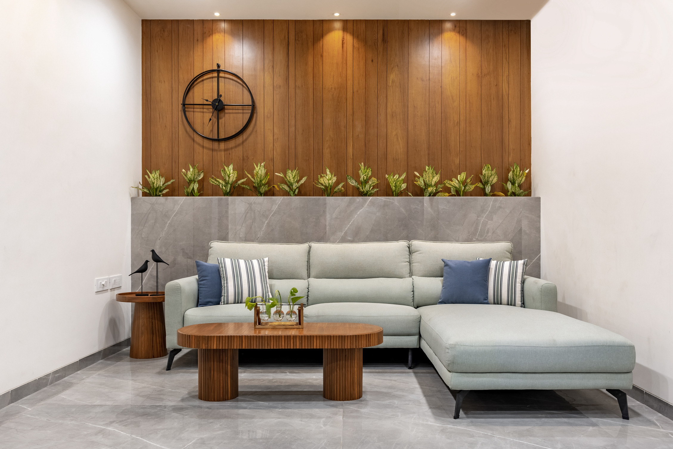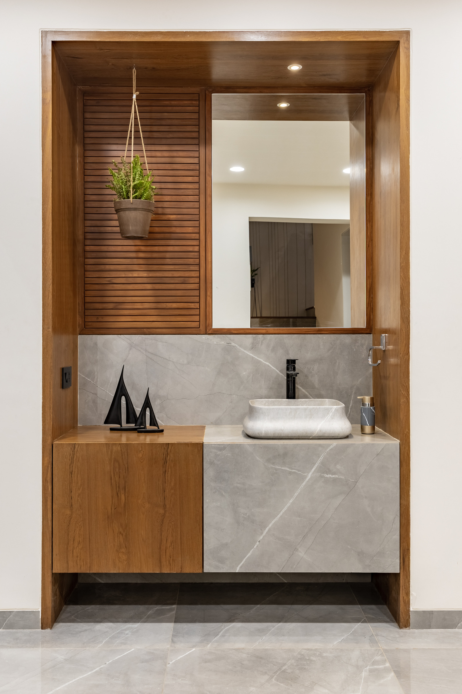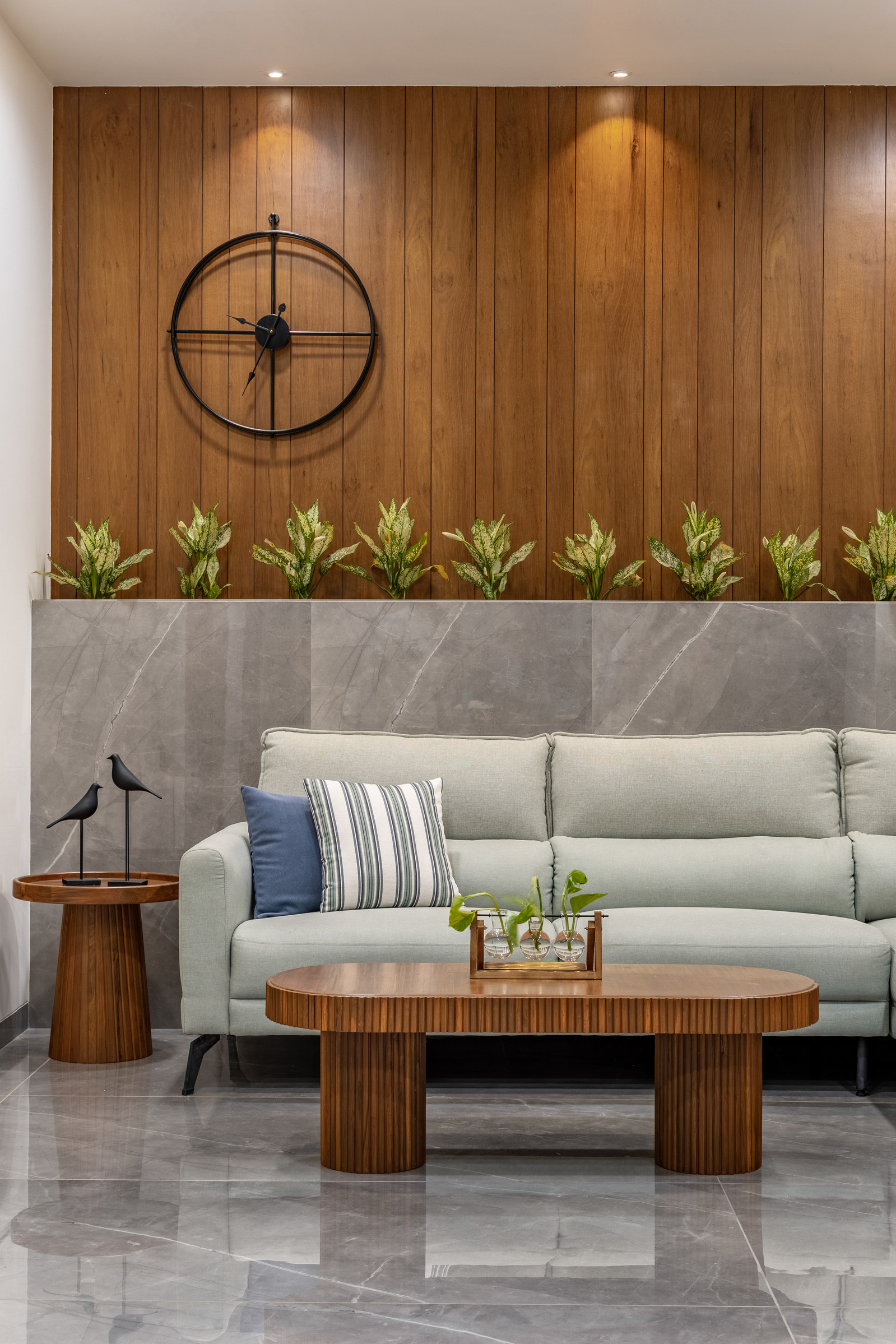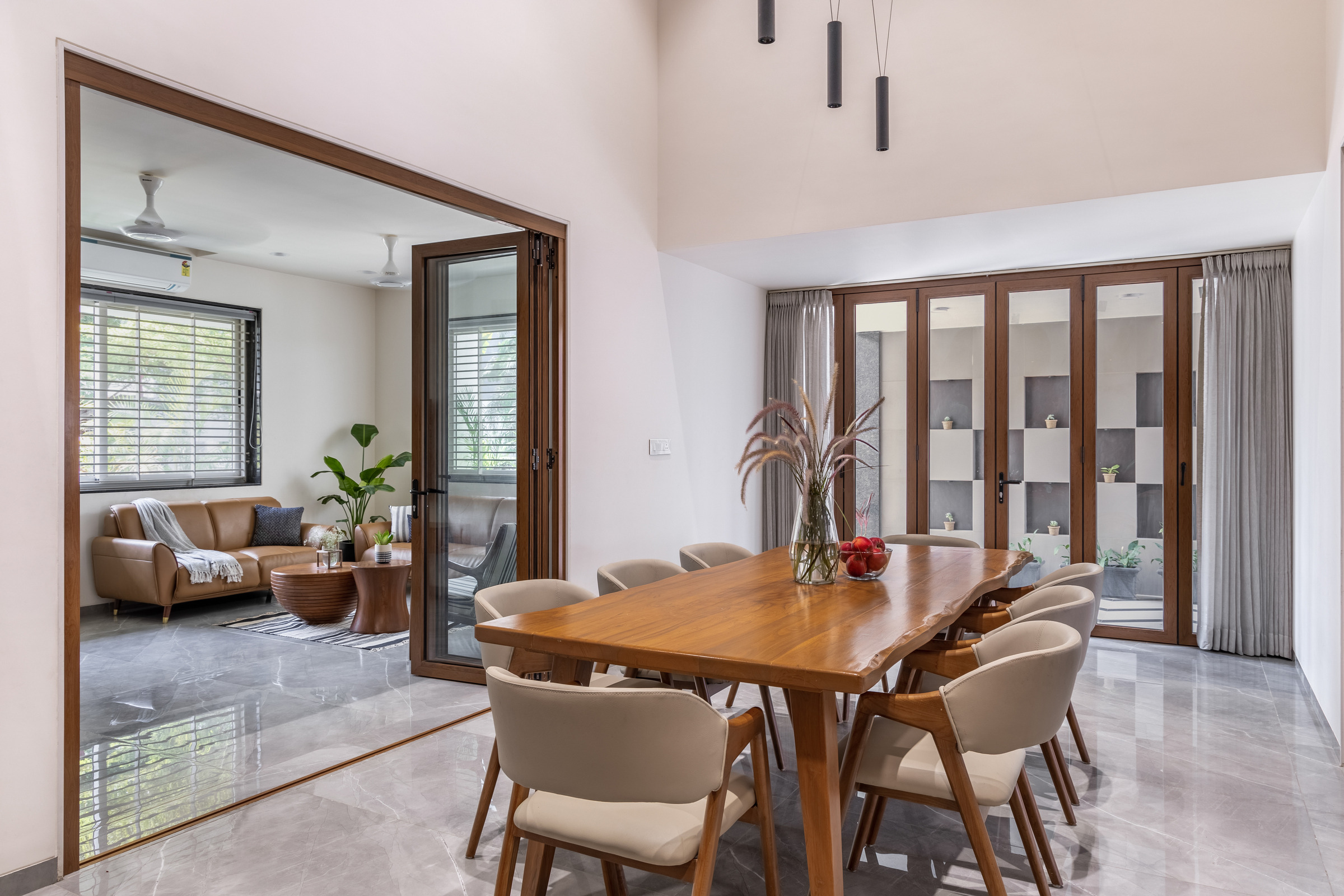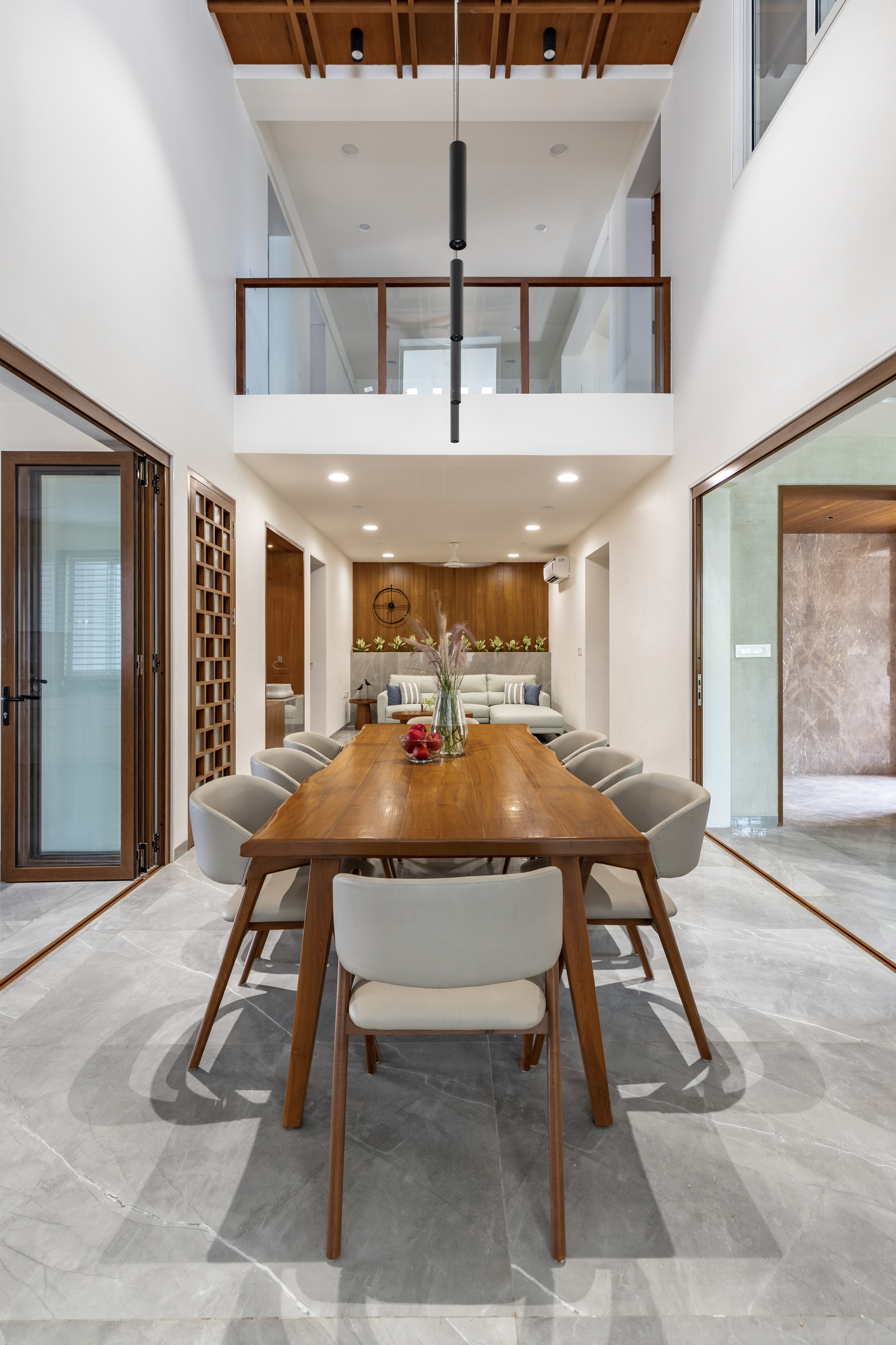 This elegant bungalow has been designed to be luxurious and comfortable – a space where the family could easily unwind and relax after a long day! The use of solid wood, a neutral colour palette and Italian Marble gives it a luxurious touch and homely and welcoming at the same time.