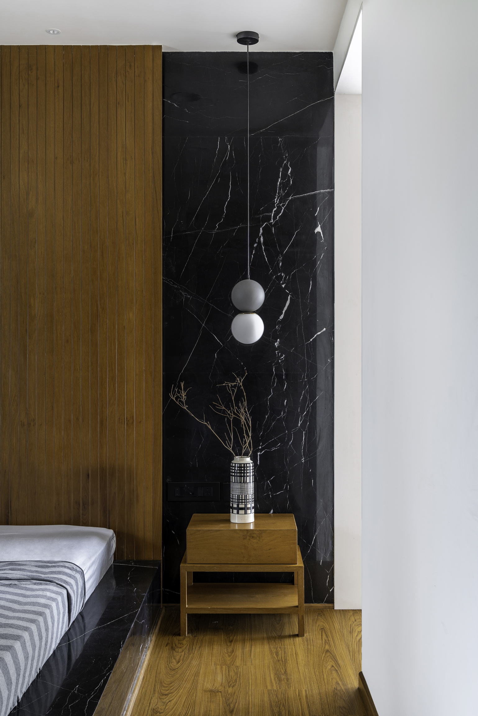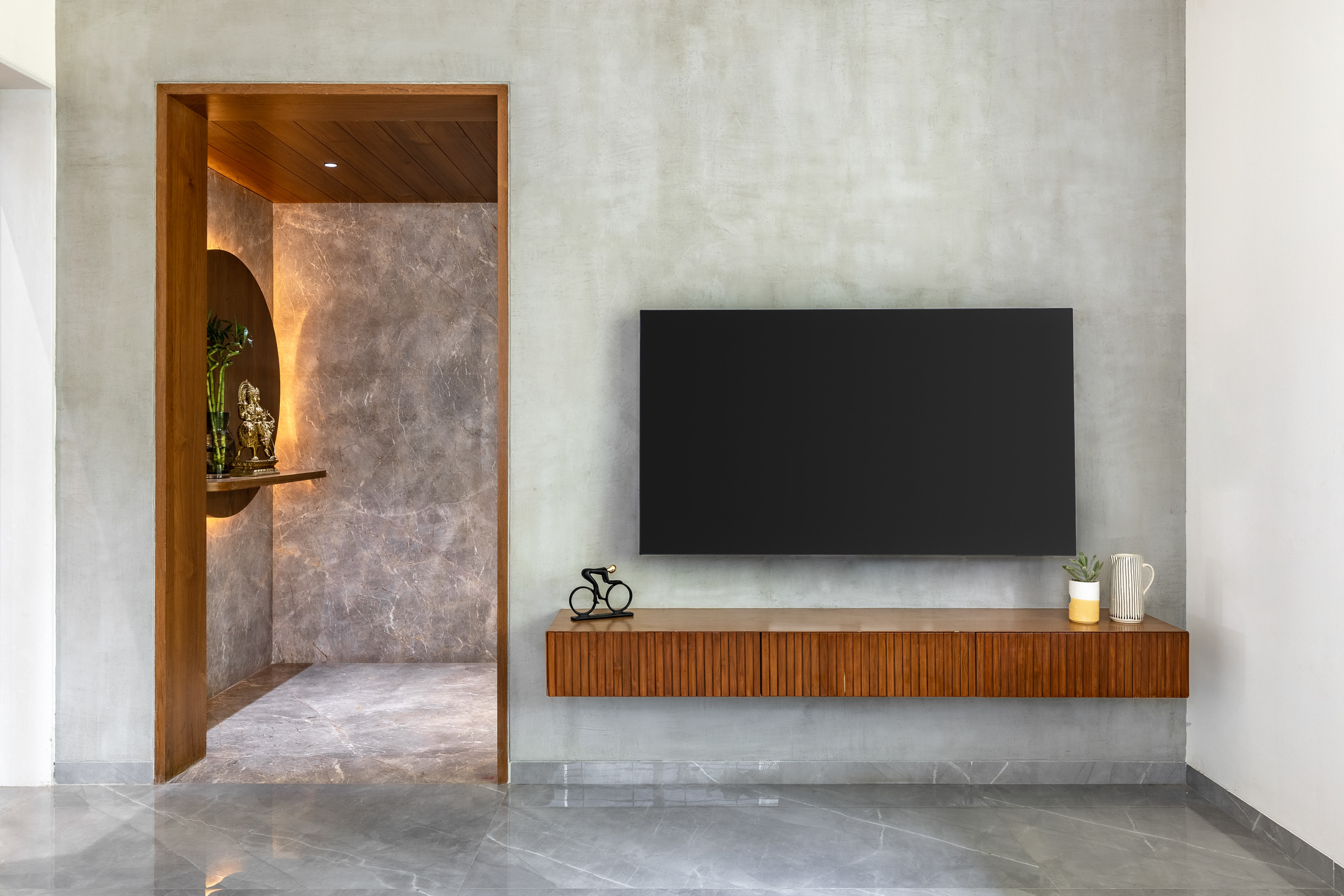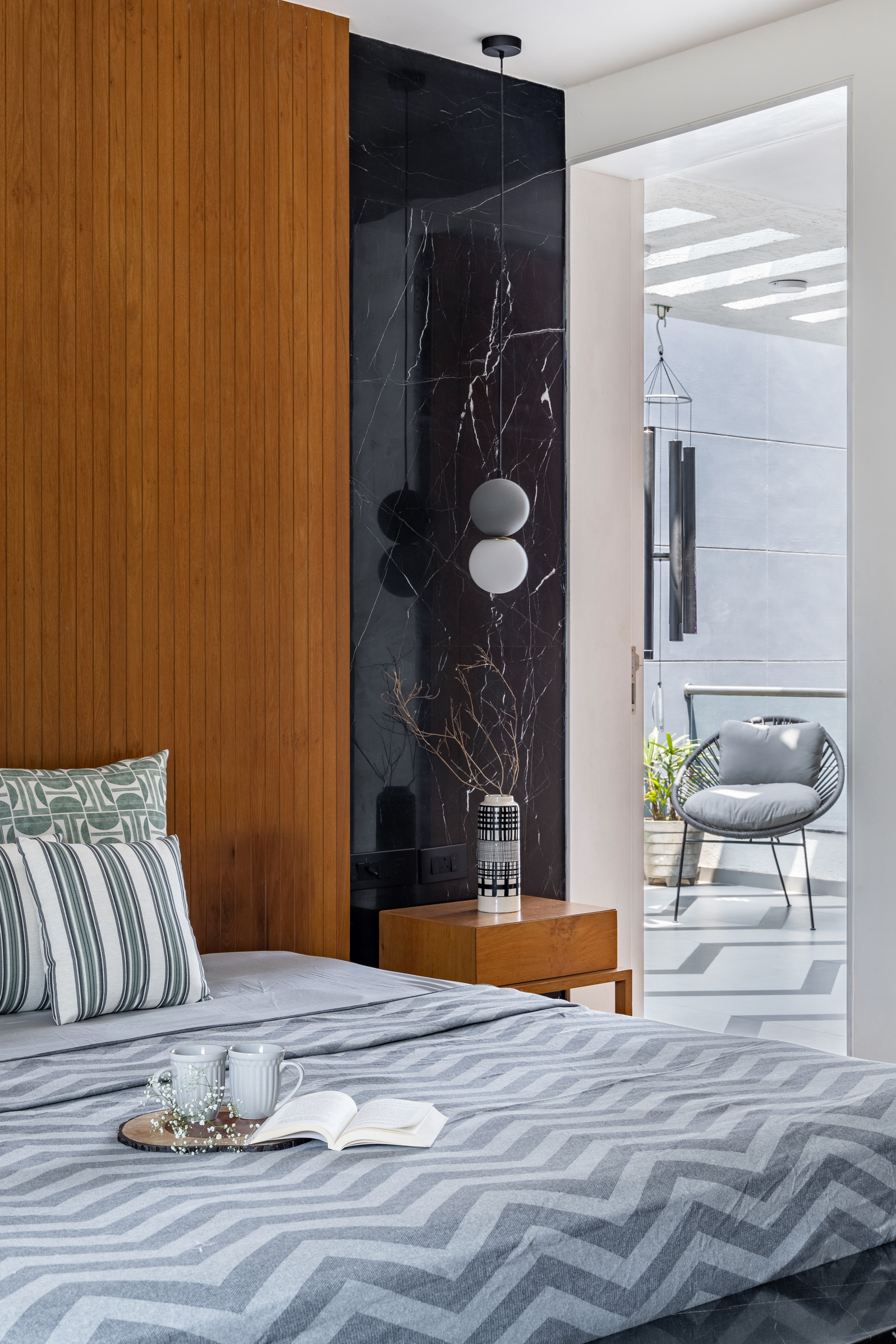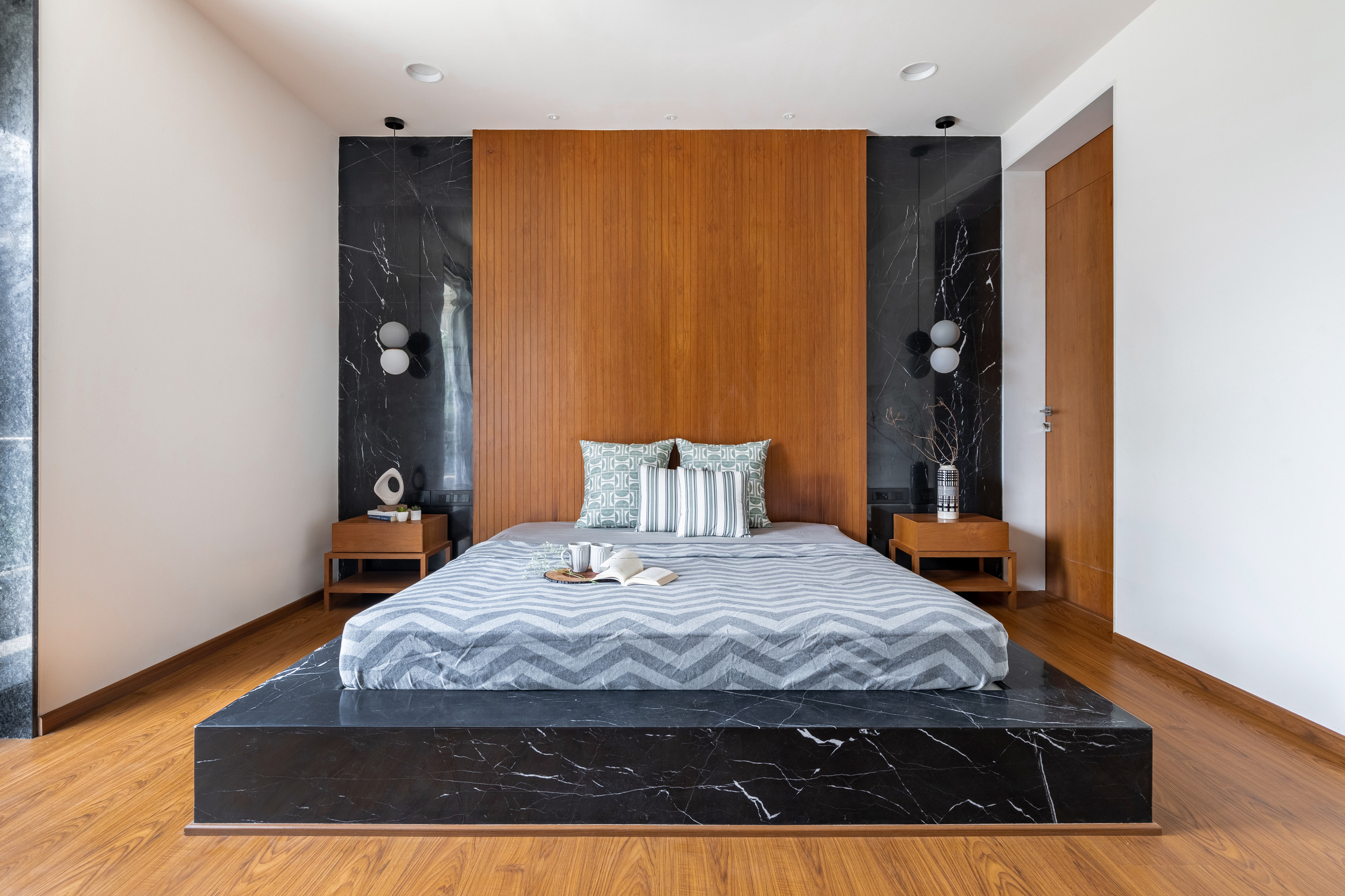 This elegant bungalow has been designed to be luxurious and comfortable – a space where the family could easily unwind and relax after a long day! The use of solid wood, a neutral colour palette and Italian Marble gives it a luxurious touch and homely and welcoming at the same time.