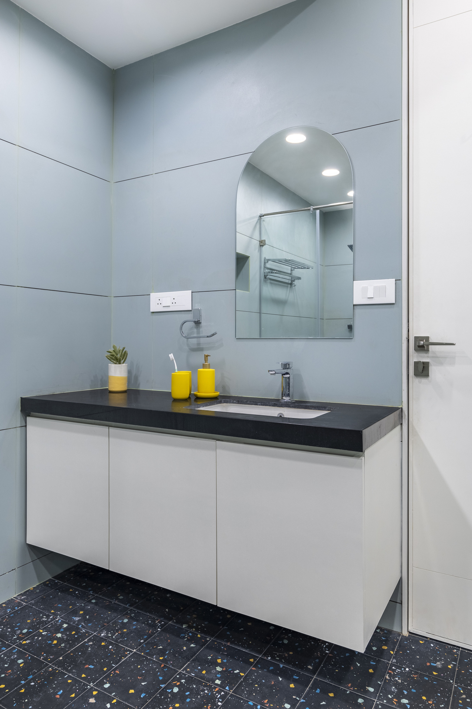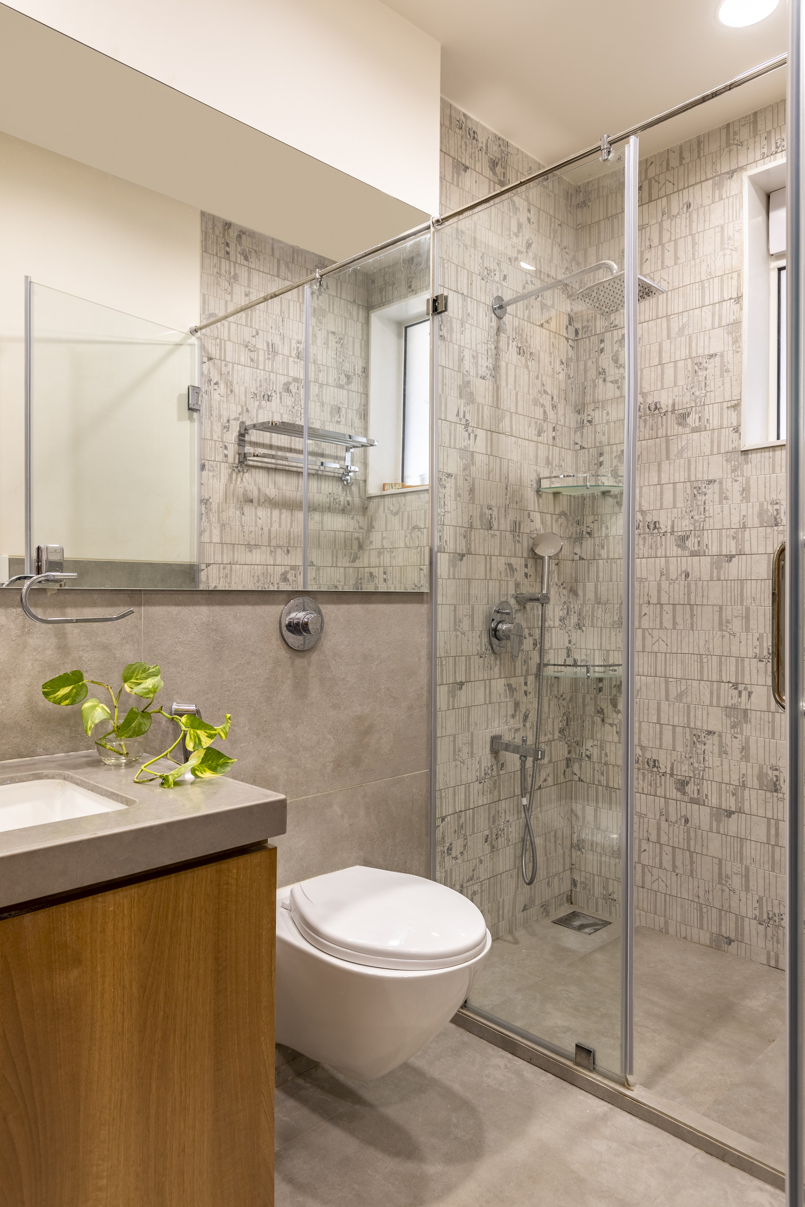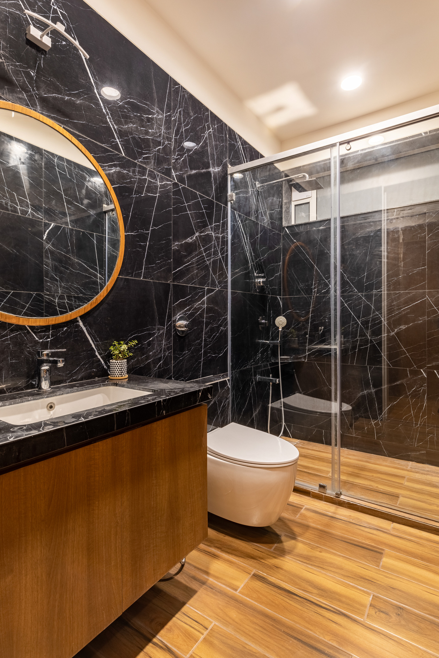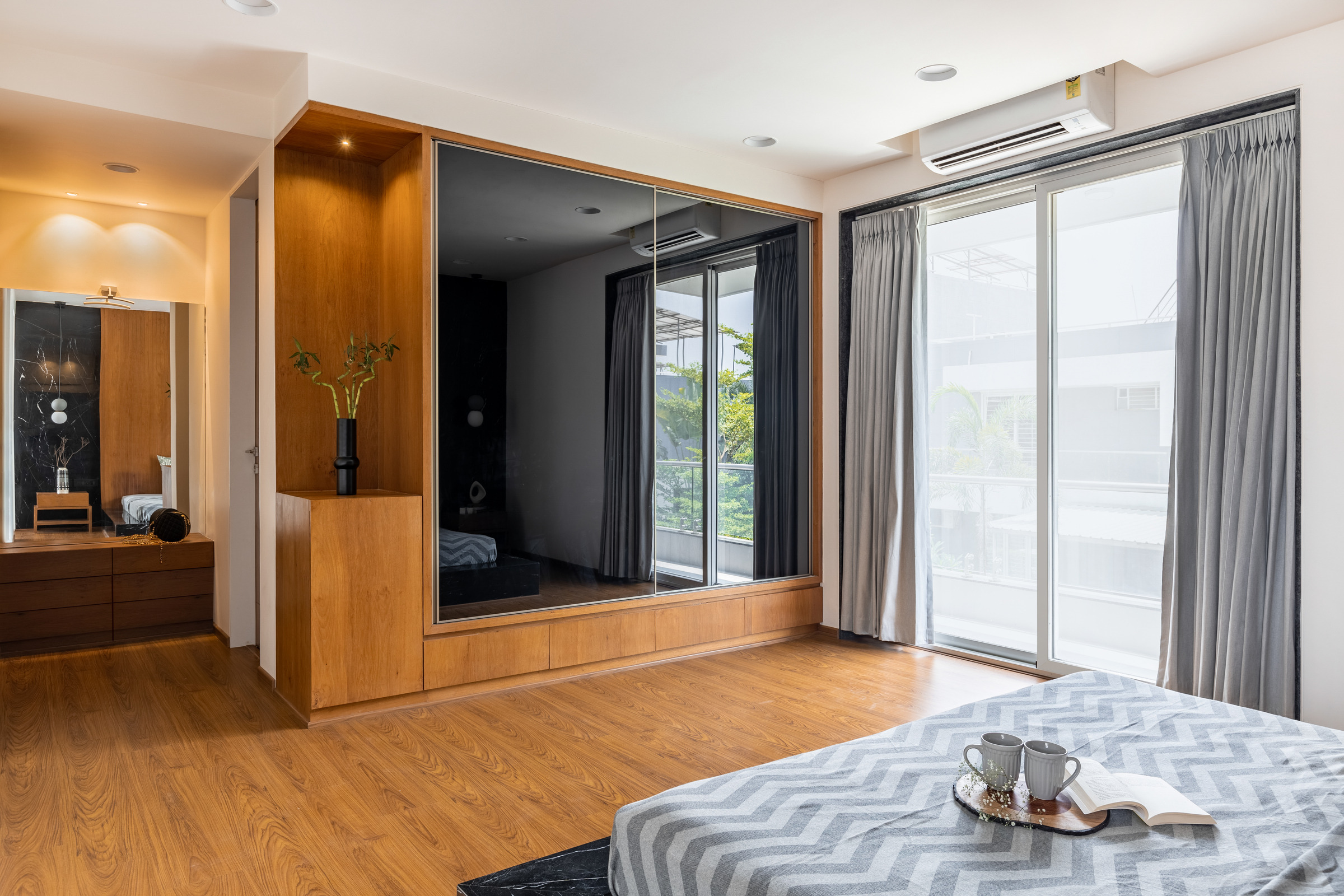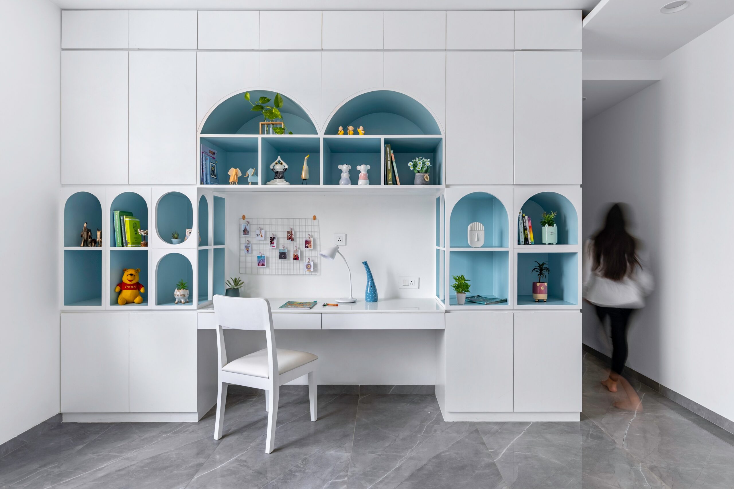 This elegant bungalow has been designed to be luxurious and comfortable – a space where the family could easily unwind and relax after a long day! The use of solid wood, a neutral colour palette and Italian Marble gives it a luxurious touch and homely and welcoming at the same time.